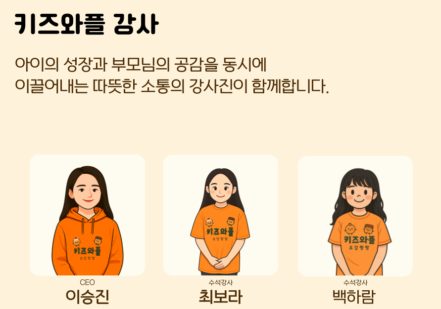 아이들의 집중력을 높이고 강사님의 세심한 케어를 극대화하기 위해, 키즈와플은 한 클래스당 10팀 정원제를 고수합니다.
